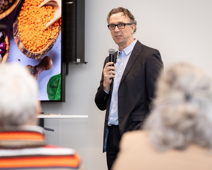 Met innovatieve, zelfontwikkelde producten lieten studenten tijdens de bijeenkomst overtuigend zien hoe gezond, duurzaam en lekker elkaar kunnen versterken. Een van de smakelijke voorbeelden was Maniteto’s: reepjes knolselderij met shoarmasmaak, gemaakt van afgekeurde knolselderij en ontwikkeld als smakelijk alternatief binnen de eiwittransitie. Zo kregen bezoekers niet alleen een inspirerend inkijkje in het praktijkgerichte onderzoek van het lectoraat, maar konden zij Robins centrale boodschap — dat duurzame en gezonde voeding vooral ook lekker moet zijn — direct zelf proeven.